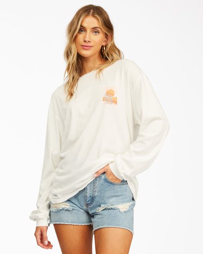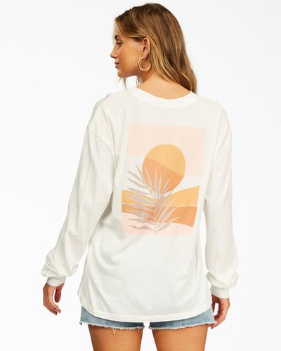 Daydreaming and reaching for the stars in the Touch The Sky T-Shirt. An oversized t-shirt with an earthy color palette and a mellow vibe, this women's graphic long sleeve is made in soft cotton jersey with a loose knit and light hand feel. Carefully pigme